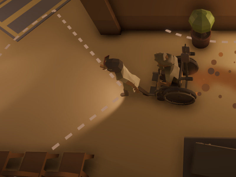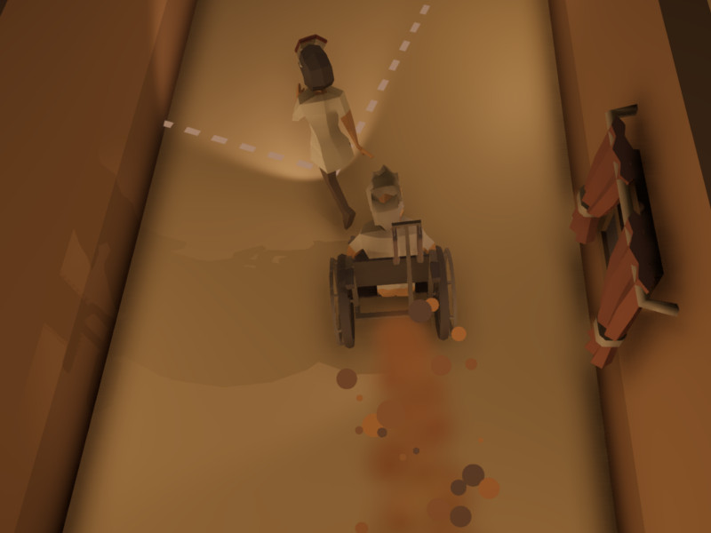 We came up with a new idea, you play as an old guy in a wheelchair and you have to escape the nursing home. The man uses his diarrhea to propel himself forward. You can also hit nurses to get some food which gives you more diarrhea. This idea turned out to be really fun and funny.